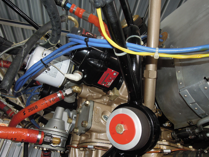 Right magneto, oil filter, carburetor, fuel pump