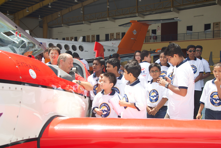 Les Vorosmarthy impressed everybody with a short aerobatic show in his Extra 300L over the runway of Subang airport.